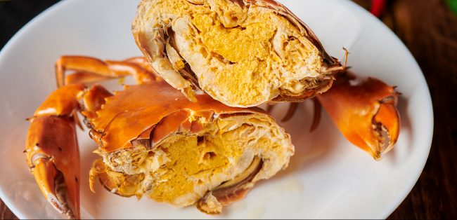 指膏蟹的卵沒有完全化油的蟹,有油底,同時具備膏蟹的膏,但比普通膏蟹更加順滑細膩,行內(nèi)稱為二手黃油蟹,品質(zhì)較高,吃起來軟糯甘香。
